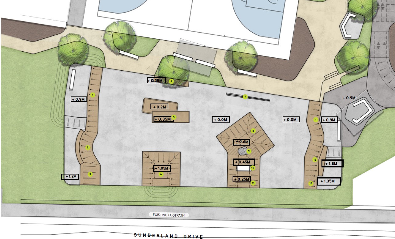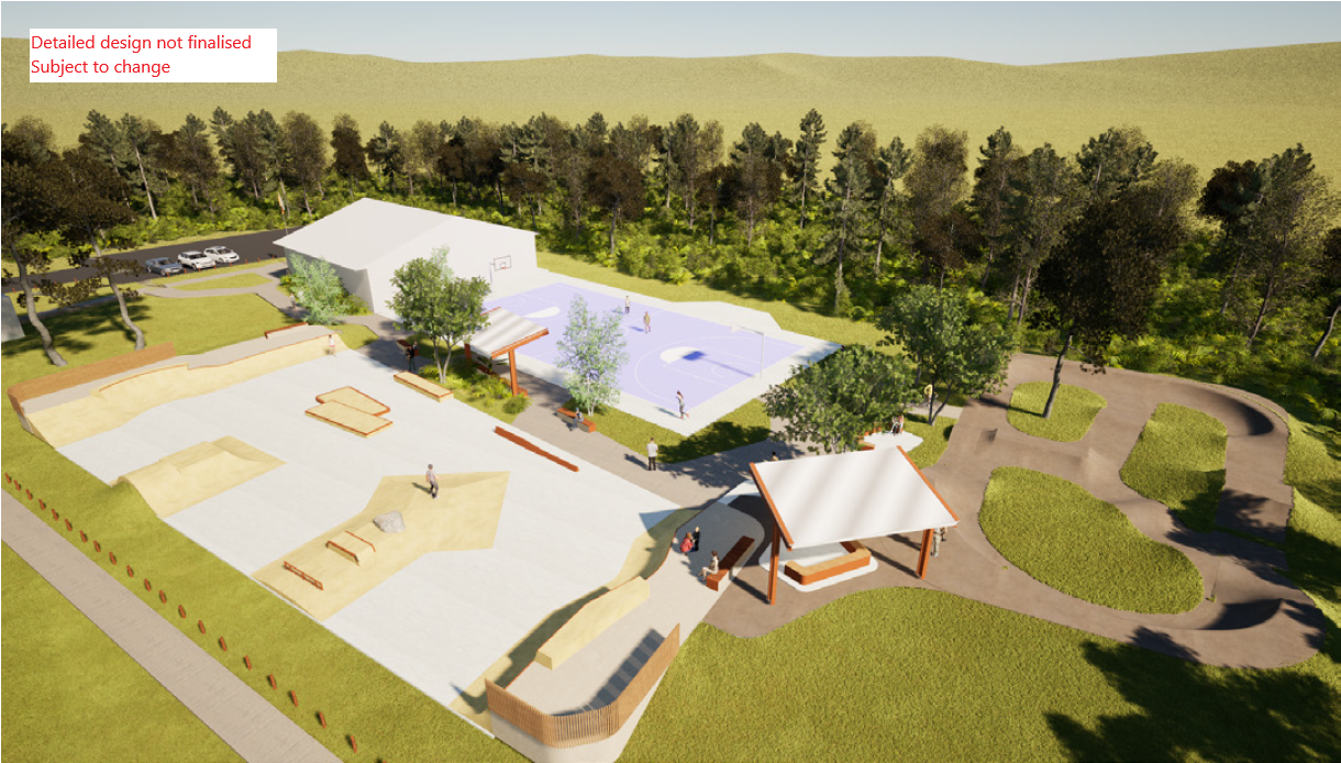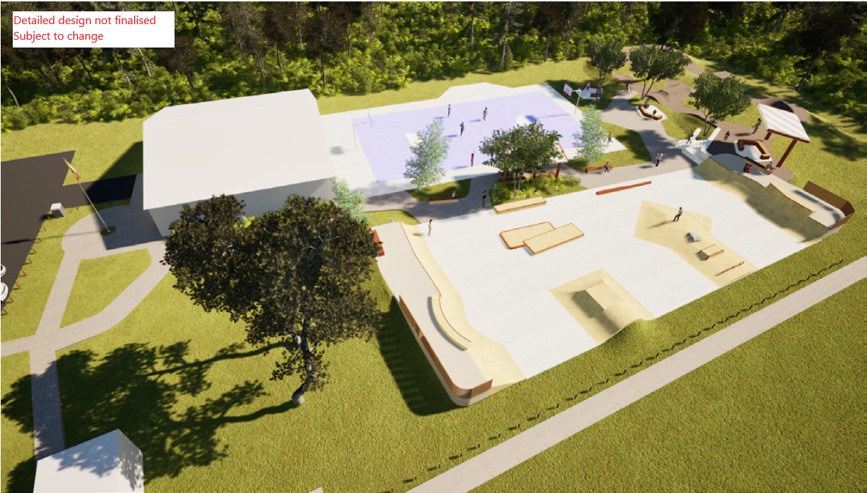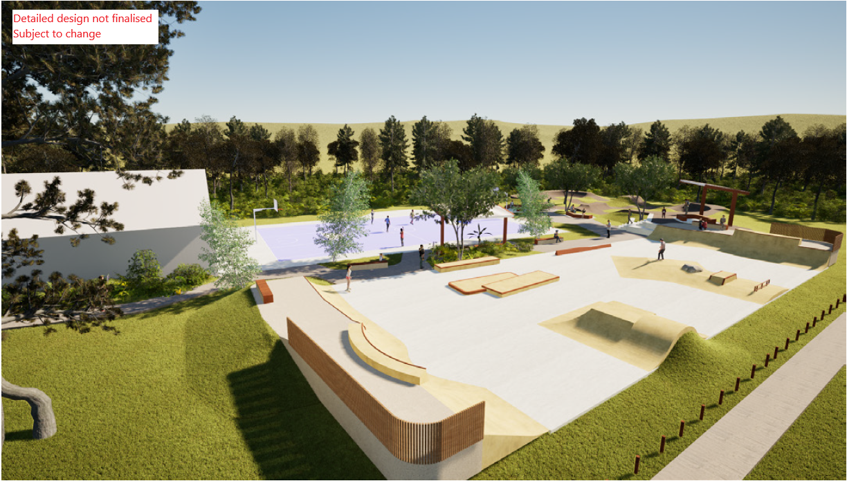 Now that we have finalised the concept design, construction of the new skate park is planned to begin in late 2026, subject to weather and other unforeseen circumstances. The pump track will not be built at this stage of construction, but we will progress the detailed design. Construction of the pump track is planned to commence in 2027.
